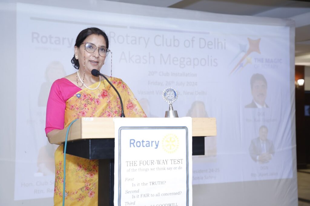 The Installation Ceremony and Governor’s Official Visit (GOV) of the Rotary Club of Delhi Akash Megapolis in July was a momentous occasion, marking the beginning of a new leadership year. During the event, Sonia Sahny was formally installed as the Club President, taking the baton to lead the club into another impactful year. The ceremony, attended by members, dignitaries, and guests, also included the official visit by the District Governor, highlighting the club’s contributions and future aspirations. It was a celebration of service, leadership, and the collective commitment to making a difference in the community.