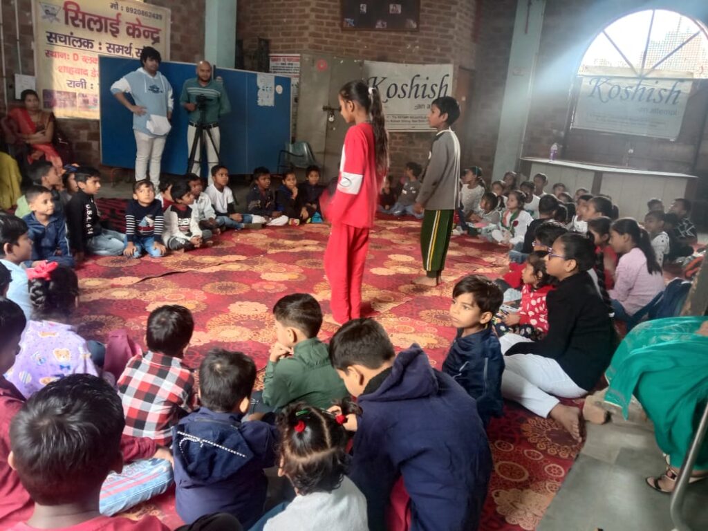 On Children’s Day, a vibrant cultural program was organized for the Koshish children at the community center in Shahabad Dairy, sponsored by Disha Publication.